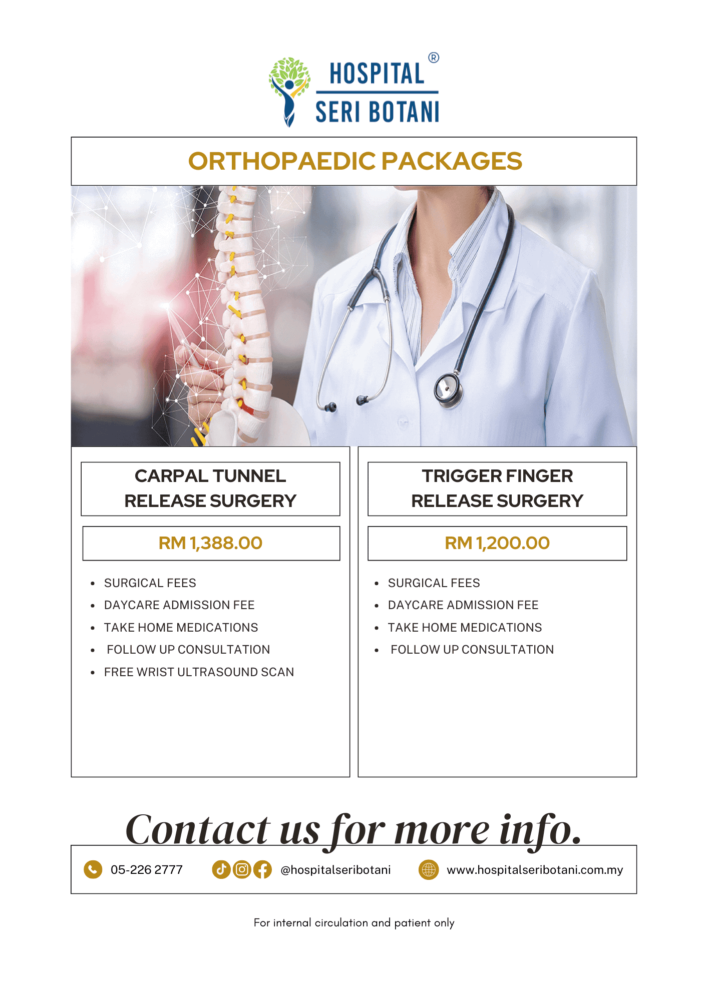 Regular health screening helps detect potential health risks early, even before symptoms appear. At Hospital Seri Botani, we offer screening programmes tailored to different needs—whether for general wellness, employment, specialised gender-based screening, or optional diagnostic add-ons.